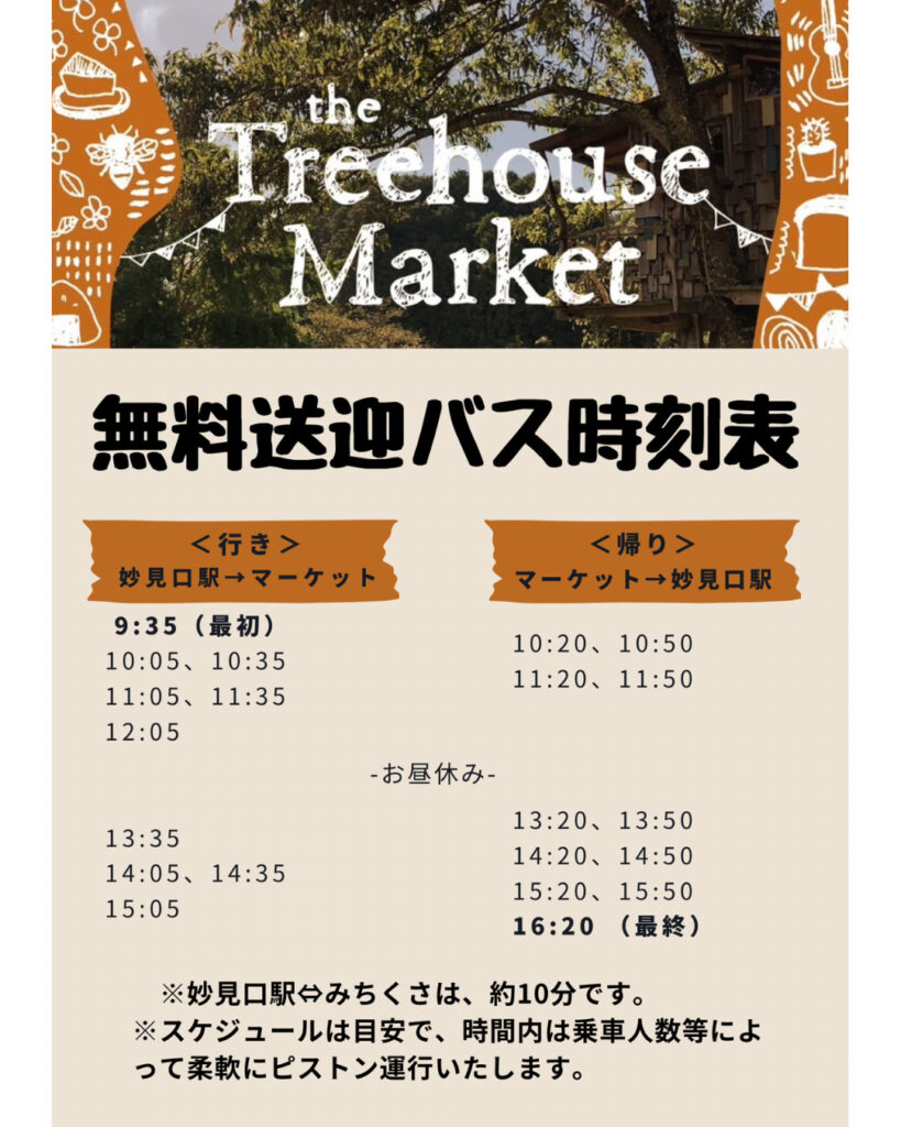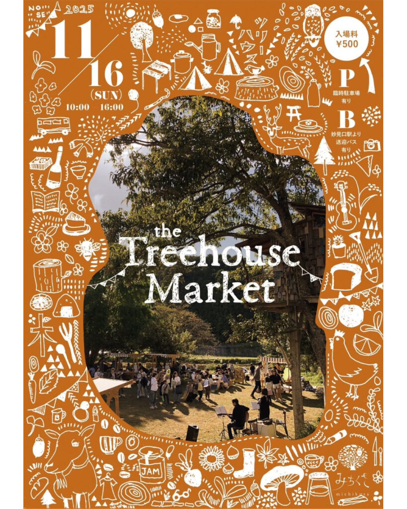 11月16日(日)の10時から、能勢町にある農家民宿「みちくさ能勢」にて、「the Treehouse Market」が開催されます。