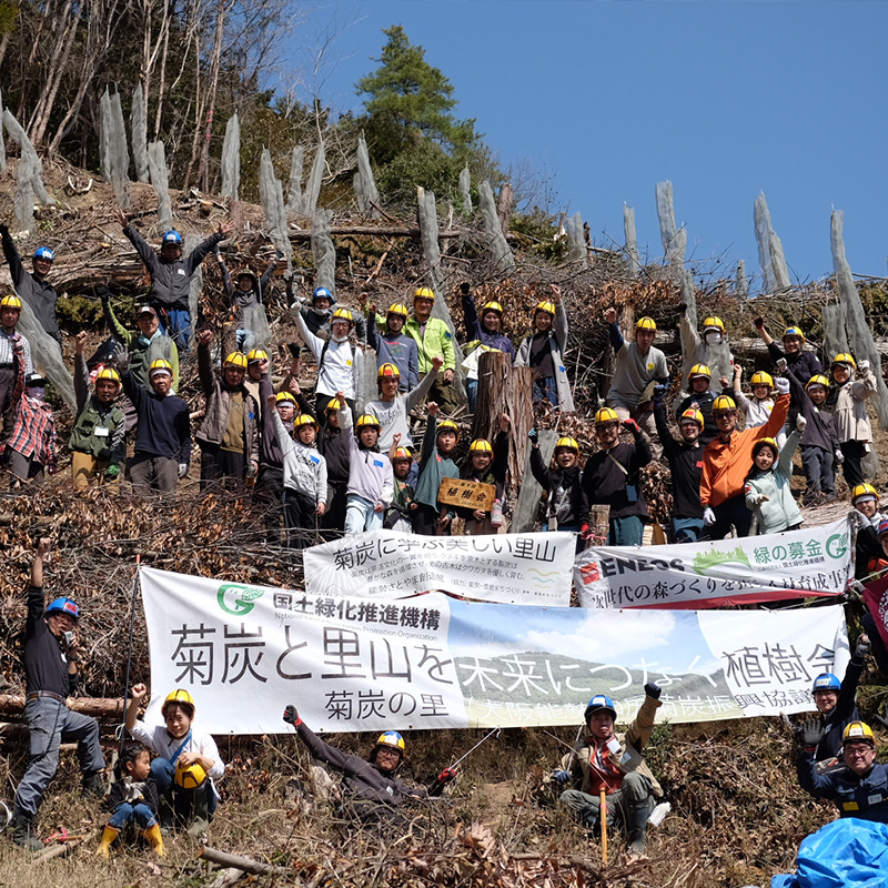 小学校向けにオンライン授業とクヌギ植樹会を連動させたプログラムを実施しています。この活動をさらに広げるため、バナーやパンフレットの制作、菊炭の見本配布などの資料製作費に充当し、中高生や大学生、社会人にも対象を広げていきたいと考えています。