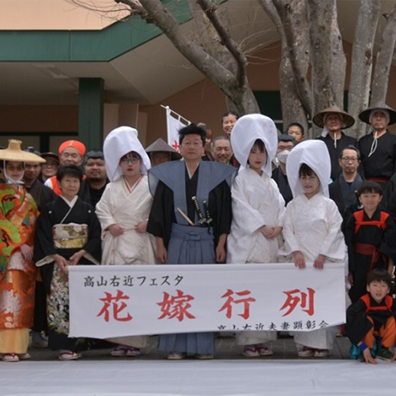 「高山右近夫妻顕彰会」では、恒例の事業として、10月に高山右近フェスタ(今年12回目)・右近志野花嫁行列(今年8回目、今年は万博大阪ウィークに出演)・右近を顕彰するミュージカル、右近についての講演会事業等々のイベントを行い、「高山右近生誕地豊能町」を町内外にアピールしています。会員会費やイベントでの寄付を募って運営していますが、資金が不足しています。事業を継続していきたいと願っています。